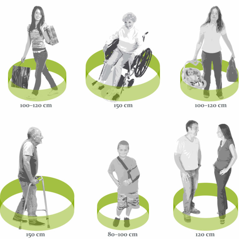 Bewegungsflächen für Rollstühle und Kinderwagen